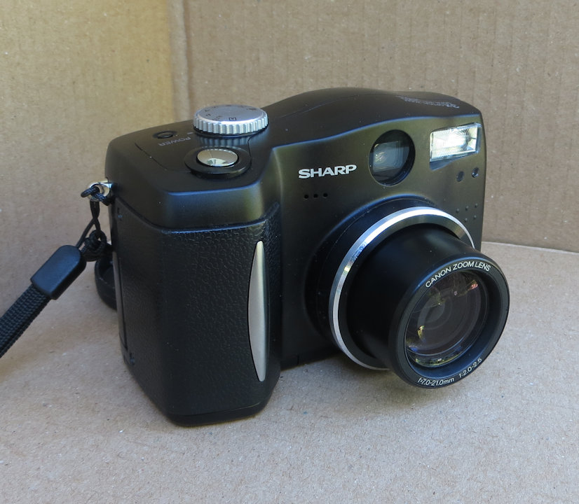 В коллекции появился второй настоящий 🙂 Кодак и первая камера от Sharp. С Шарпом, правда, не всё так просто. Судя по их английской странице в Вики, компания не занималась цифровыми камерами, по крайней мере я там про это не нашёл. Видимо камеры для них делал Canon – объектив на камере на это как бы намекает 🙂