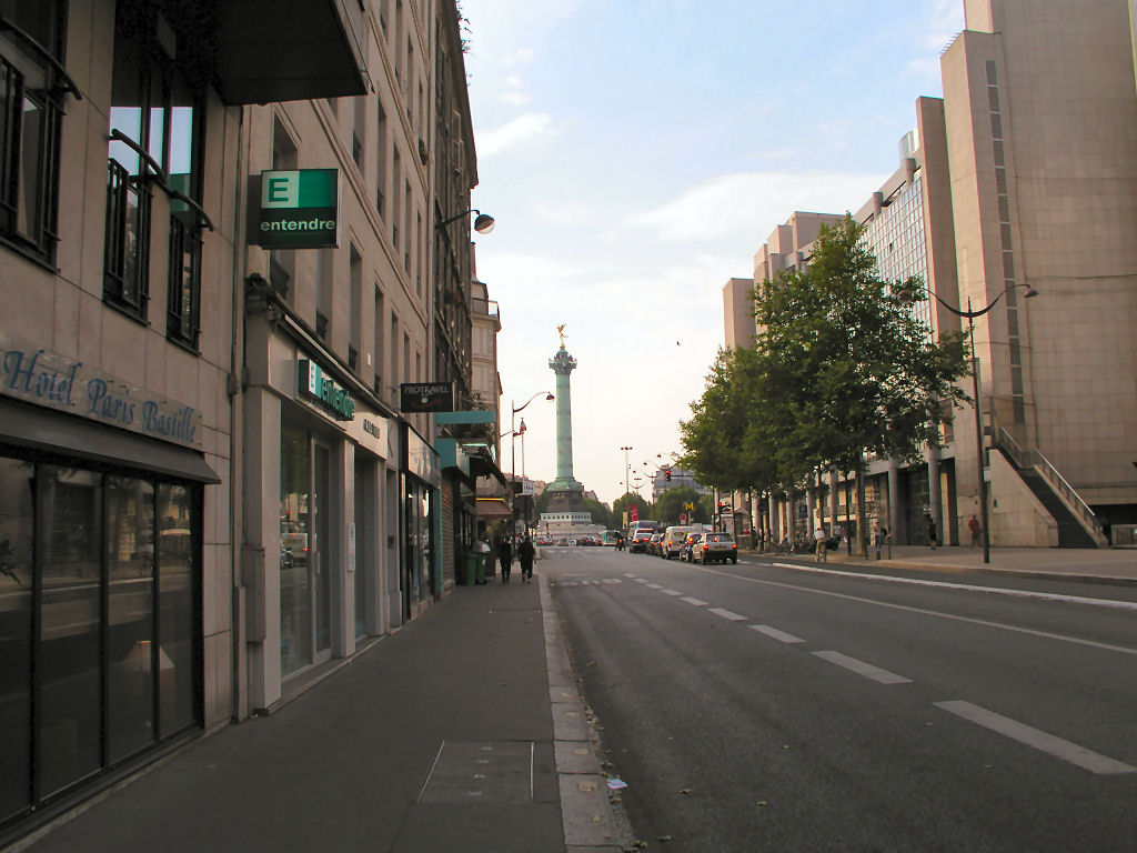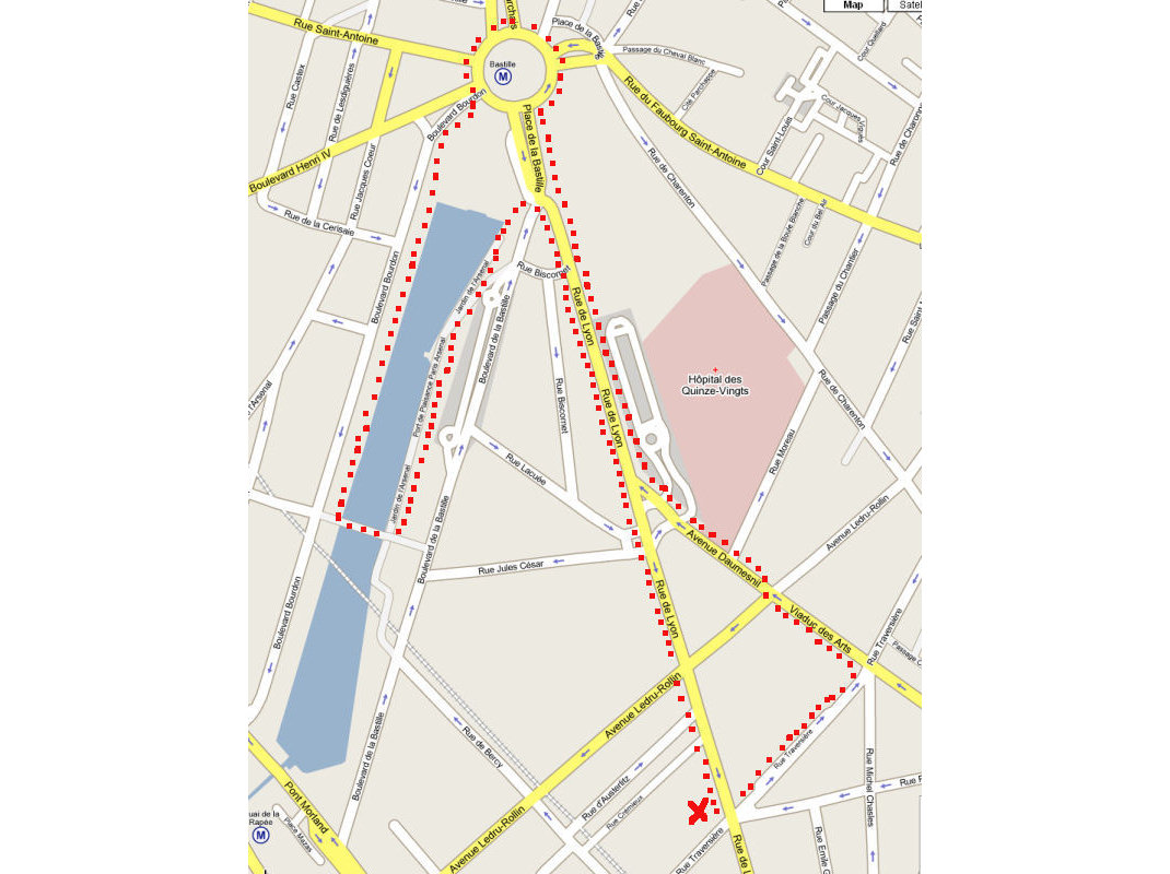 Первая прогулка была от отеля до площади Бастилии, потом по берегам канала(?), затем вернулся на площадь и вернулся в отель.